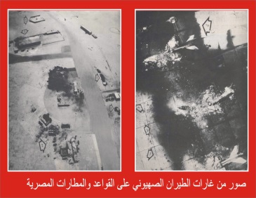 في الساعة " 8 والدقيقة 45 " بتوقيت القاهرة كانت الطائرات الإسرائيلية تقصف المطارات المصرية قصفا شديدا وفي نحو ثلاث ساعات قضي الطيران الصهيوني علي ثلثي القوات الجوية المصرية و هي جاثمة علي الأرض , و بذلك تقرر مصير الحرب بين إسرائيل والبلاد العربية .