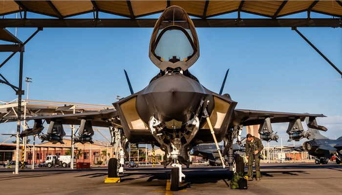 صورة مقاتلة الجيل الخامس F-35A في "وضعية الوحش" نشرت في موقع bmpd وهي توضح بأن الطائرة مسلحة بالصاروخ الموجه قصير المدى AIM-9X وست قنابل موجهة بالليزر GBU-12 وزنها 500 رطل. أربعة منها تقع تحت الأجنحة واثنان في حجرة الأسلحة.