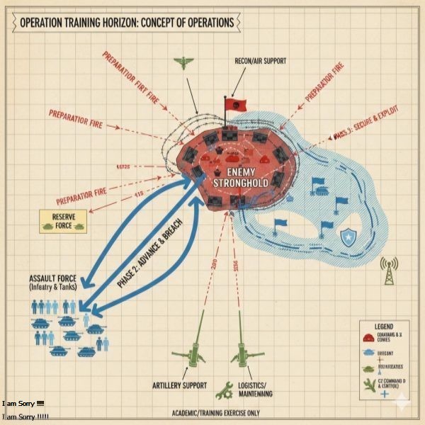 Purpose: Provide a conceptual template for academically understanding planning steps for an operation against a fortified target.